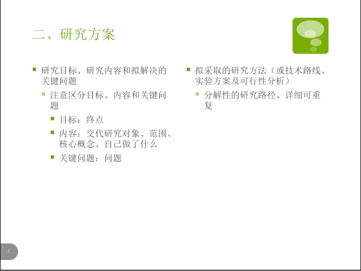 肖慧敏师姐在开篇中指出,开题报告实质是对自己现阶段研究的落实情况的一个汇报,有别于毕业论文,但与毕业论文的质量直接相关。随后,从目标原则、如何准备开题、如何撰写开题报告三个方面进行了分享。师姐在分享中提出很多创见,例如:在第一部分中指出开题报告是寻求老师指导的重要时机,因此应当在形式、思路上不出错,才能获取更多有价值的帮助;在第二部分中指出选题是一个贯穿整个论文撰写的过程,会在写作研究中不断调整;在第三部分中指出实证性研究的开题从研究方案切入比较高效,文献综述撰写应当将答辩老师定位为读者、注重导向自己的研究等。
