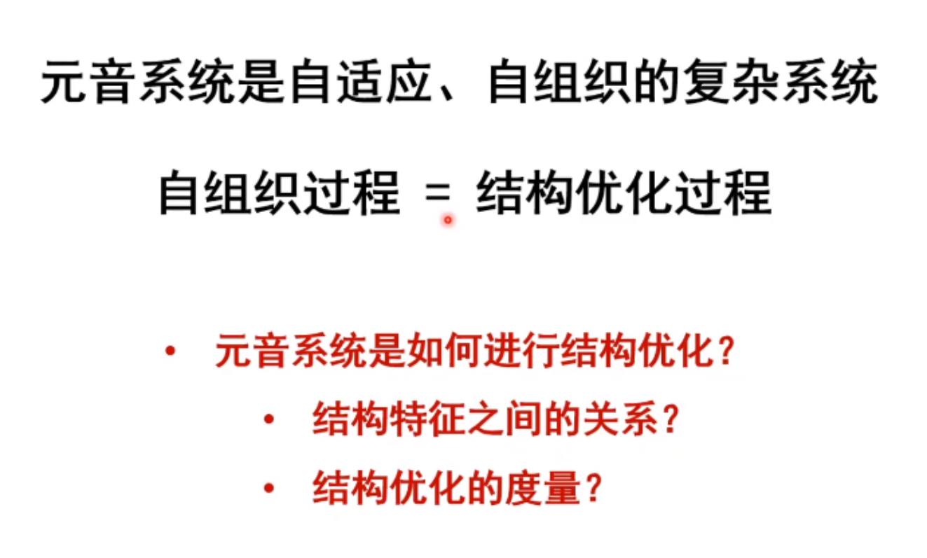 报告提到,整个语言系统,包括元音系统,是一个自适应、自组织的复杂系统,而自适应、自组织的过程就是一个结构优化的过程。张梦翰老师的讲座围绕元音系统在结构优化过程中的三个问题展开,分别是:元音系统如何进行结构优化?元音系统结构特征(分散度、集中度、元音空间)之间的关系如何?如何度量结构优化?