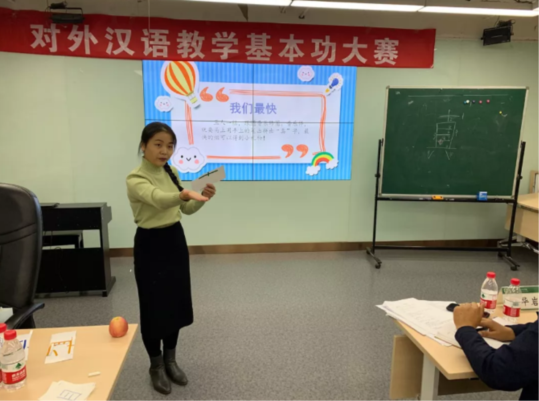 10名入围选手根据同一篇给定课文,自主确定教学对象、教学内容、教学重难点,设计不同的教学方法,分别进行共计12分钟的说课与讲课。虽然课文相同,但各位选手积极创新、勇于挑战,带来一堂堂风格鲜明、别开生面的汉语课。