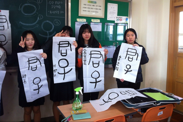 2012汉推蔡馨逸韩国——教韩国员工书法