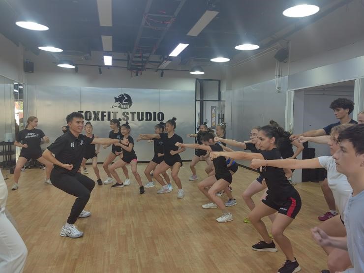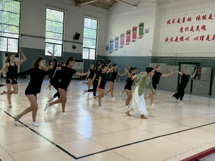 (学员们在南京体育公司体验中国舞蹈和武术)