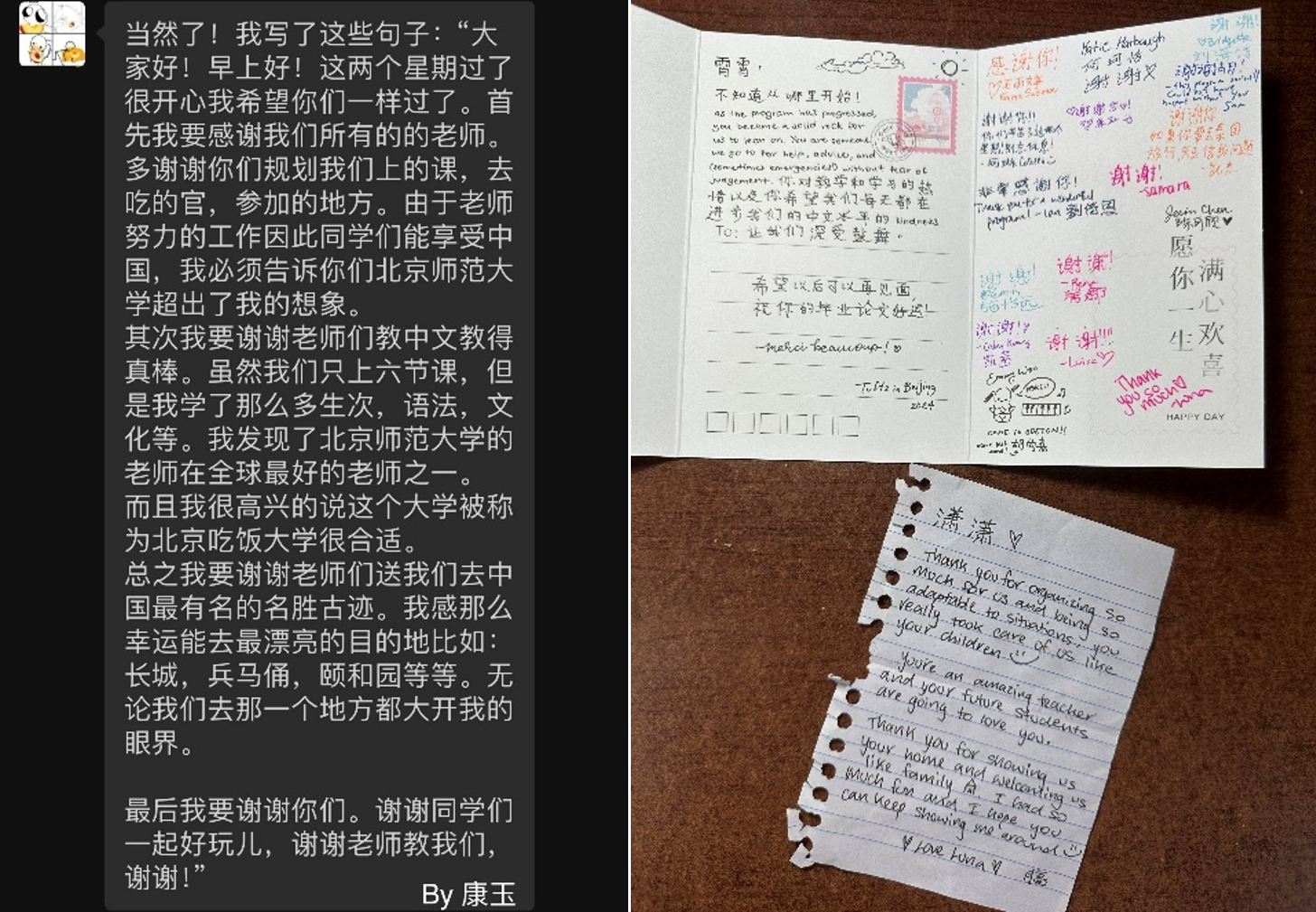 员工们在结业仪式上的发言和给老师们的感谢信