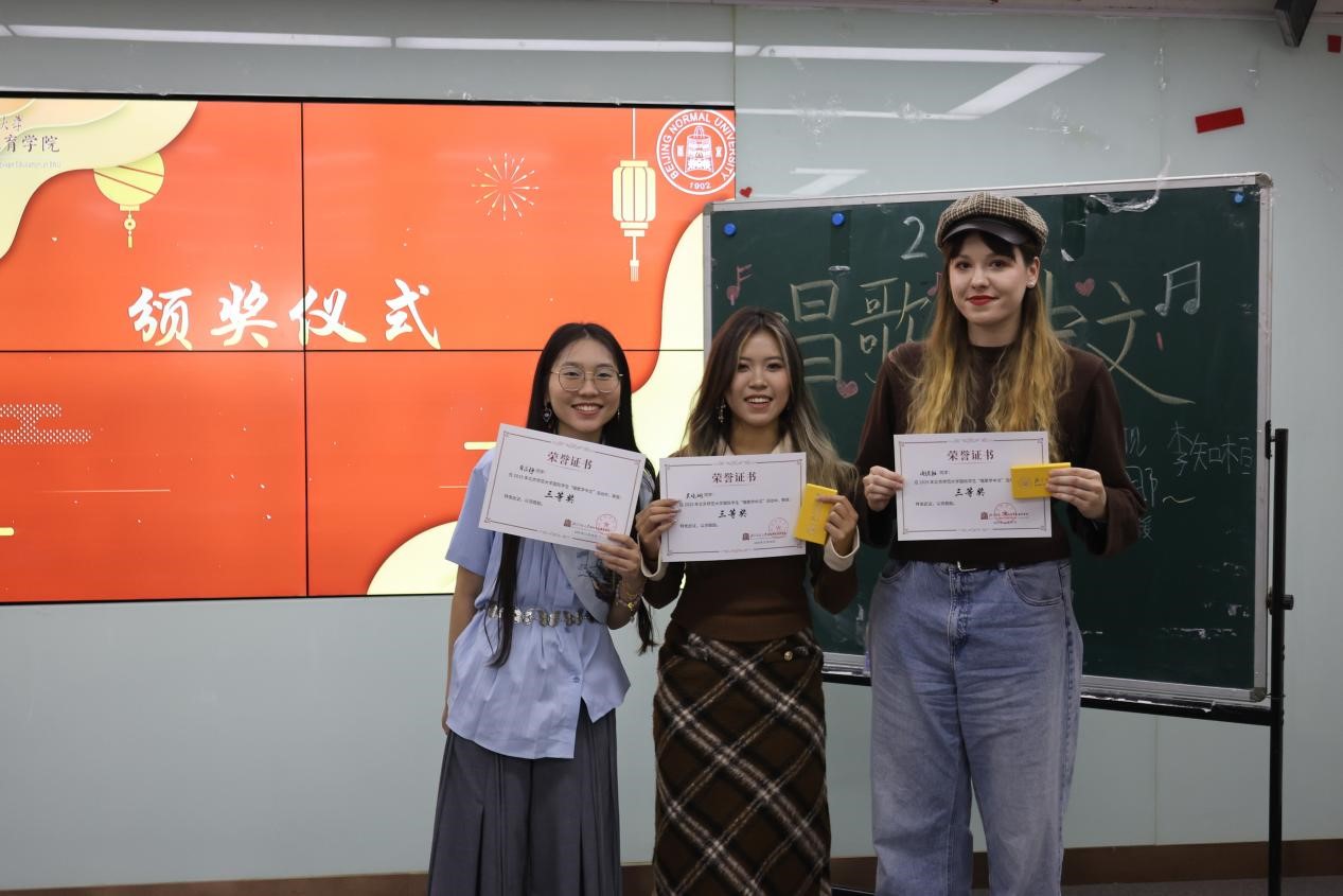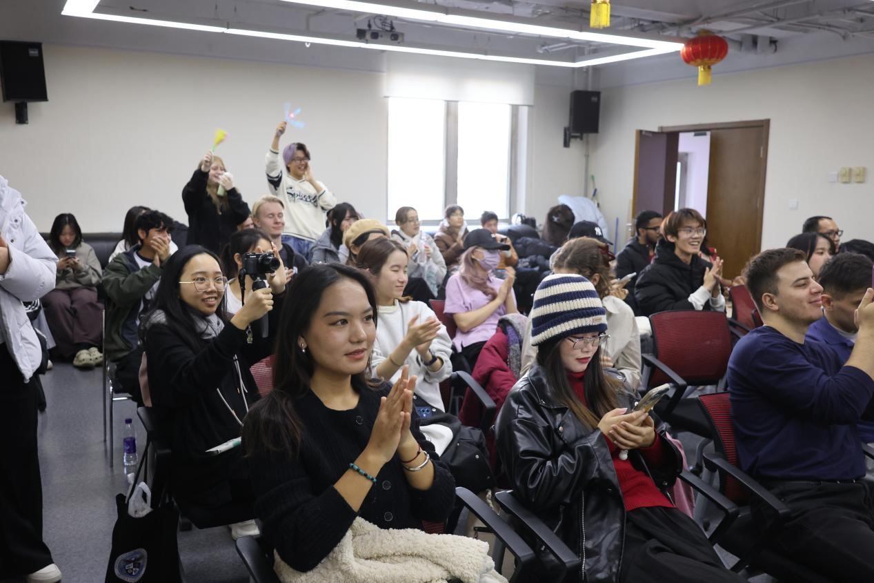 11月28日下午,由yl7703永利主办的yl7703永利集团官网国际员工“唱歌学中文”比赛在主楼B308圆满举办。来自北师大4个公司9个国家共15名职工登台现场演唱,近百位国际员工到现场观看,378人参与了线上“最具人气奖”投票。国际交流与合作处职工办公室教师刘欣雨出席本次活动,刘一杉、卢华岩、李涣、彭金玉、徐棠等几位老师担任本次比赛评委。来自越南的阮玄英和来自美国的和道担任主持人。