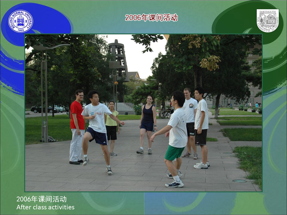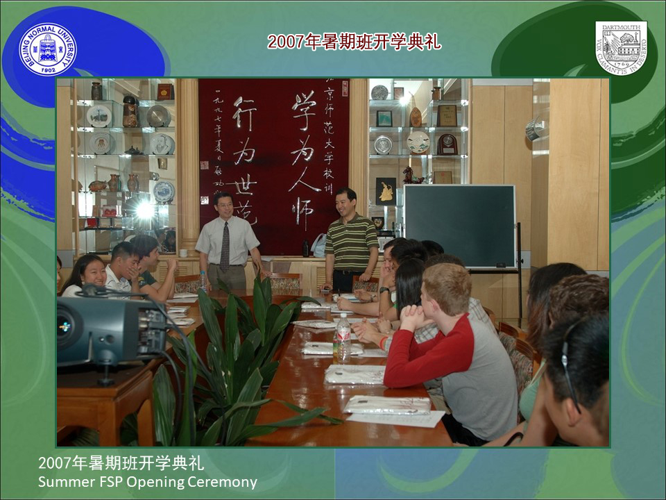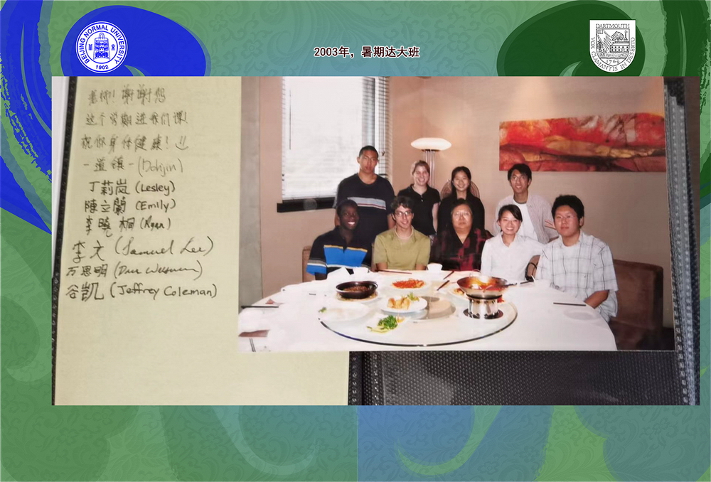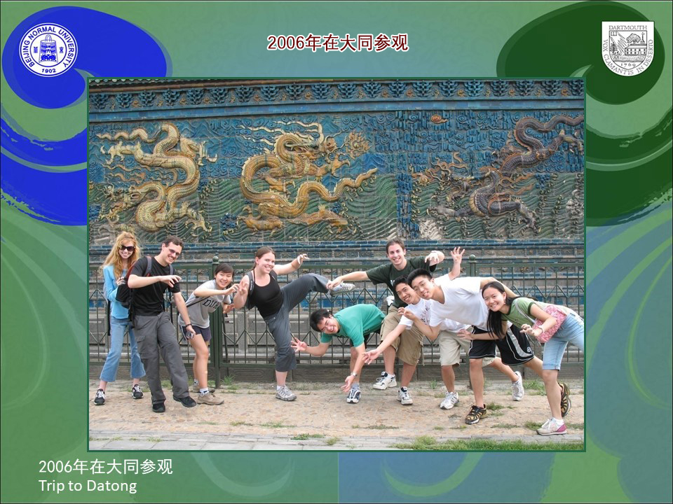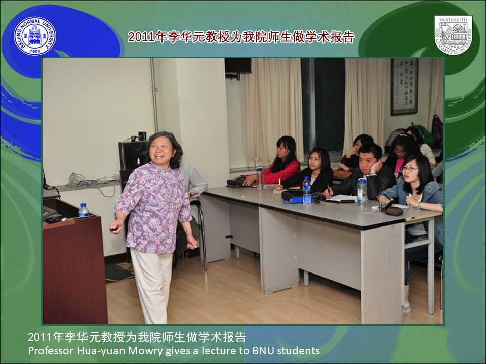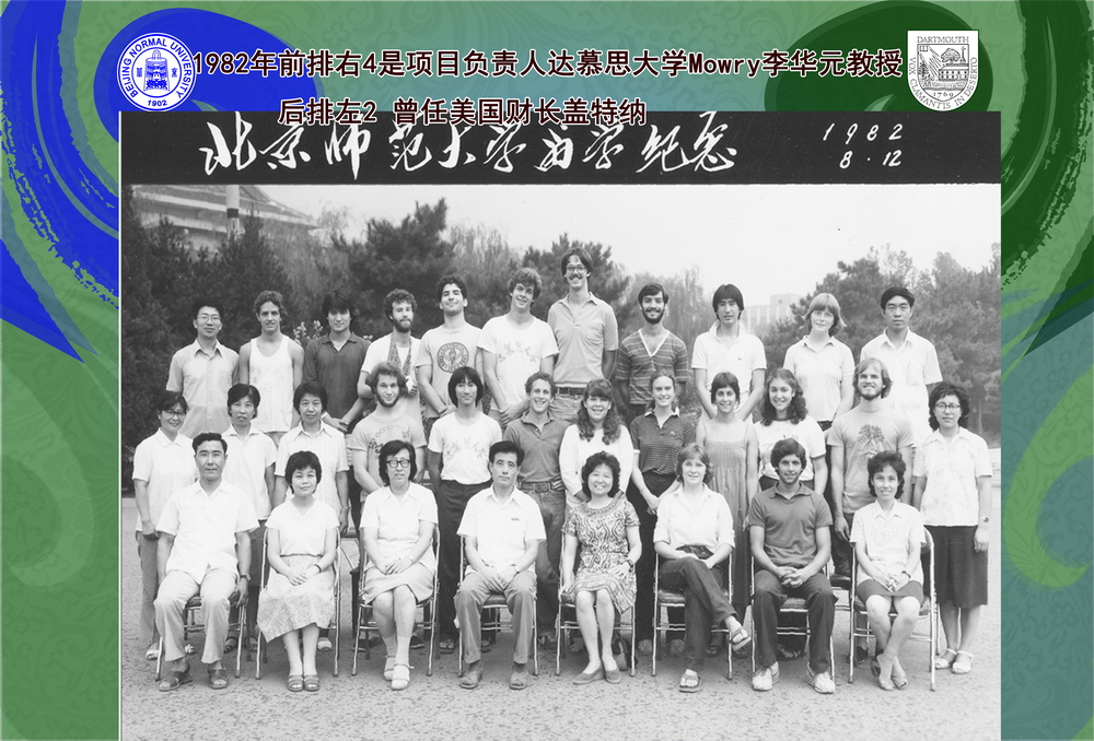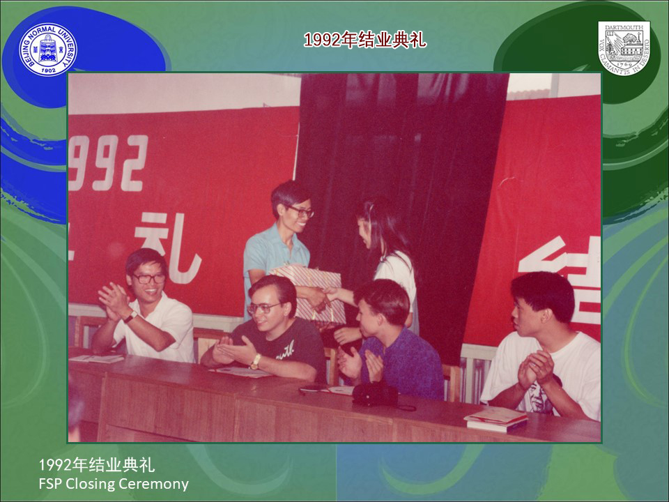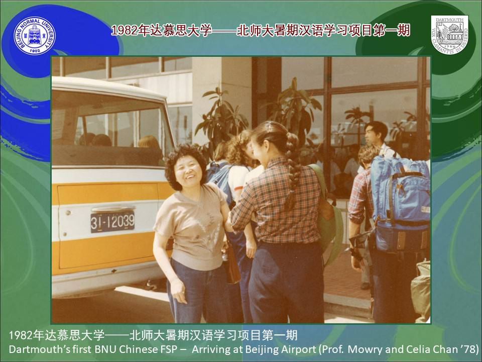 At this moment, as we celebrate the 40th anniversary of the cooperation, we are especially grateful to Dartmouth Professor Hua-Yuan L. Mowry, who has contributed so much to the development of the programs from its very first days. We also want to thank the teachers of BNU who have worked hard at Dartmouth. They are (Sorted by the first name):