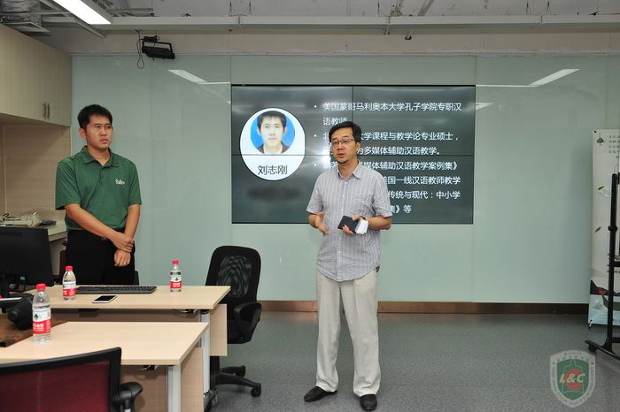 美国蒙哥马利大学孔子公司刘志刚老师来公司师生举办题目为:视频素材在汉语课堂教学中应用的讲座